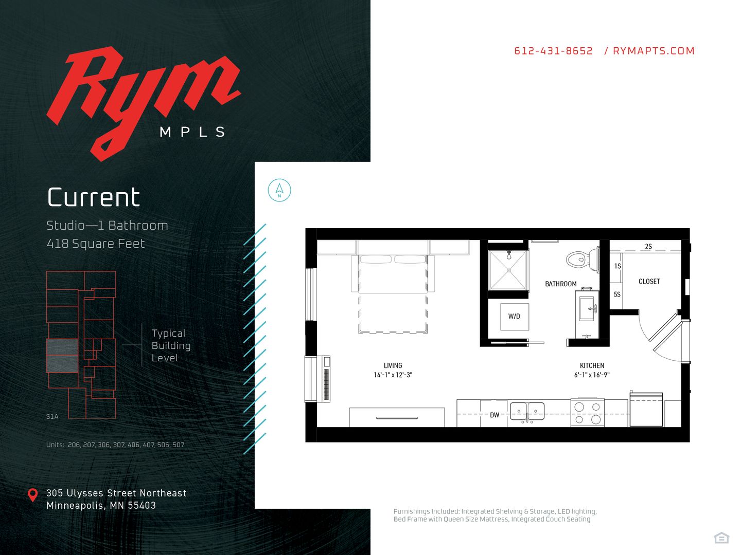 Located in the thriving maker’s corridor of Minneapolis, Rym delivers the choices you need to live the life you want—including a variety of unique floor plans to choose from! Rym is designed to reflect the creativeness of this historic maker’s neighborhood in Minneapolis. You’ll see fun touches throughout the building that bring the vibrancy of the neighborhood indoors!