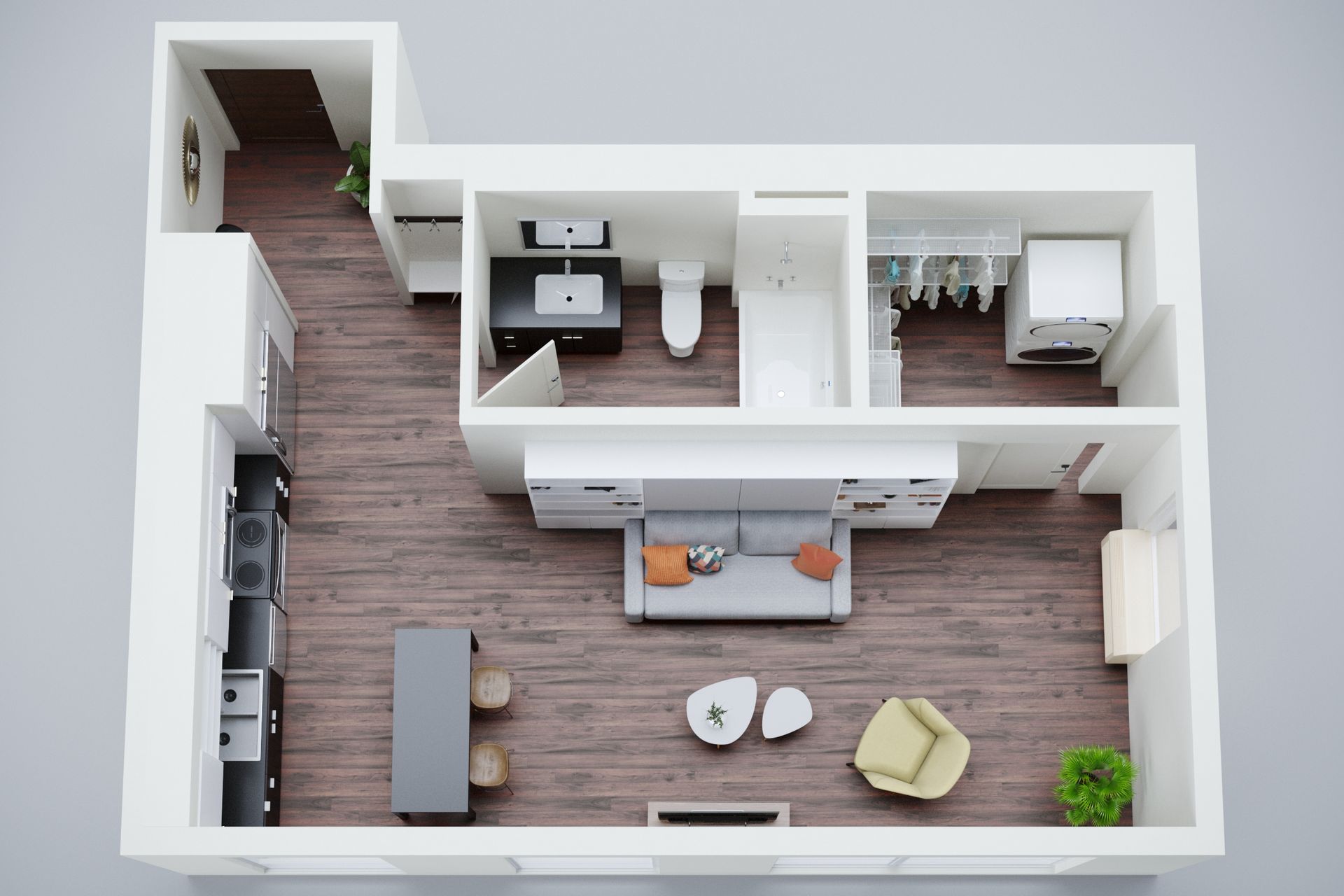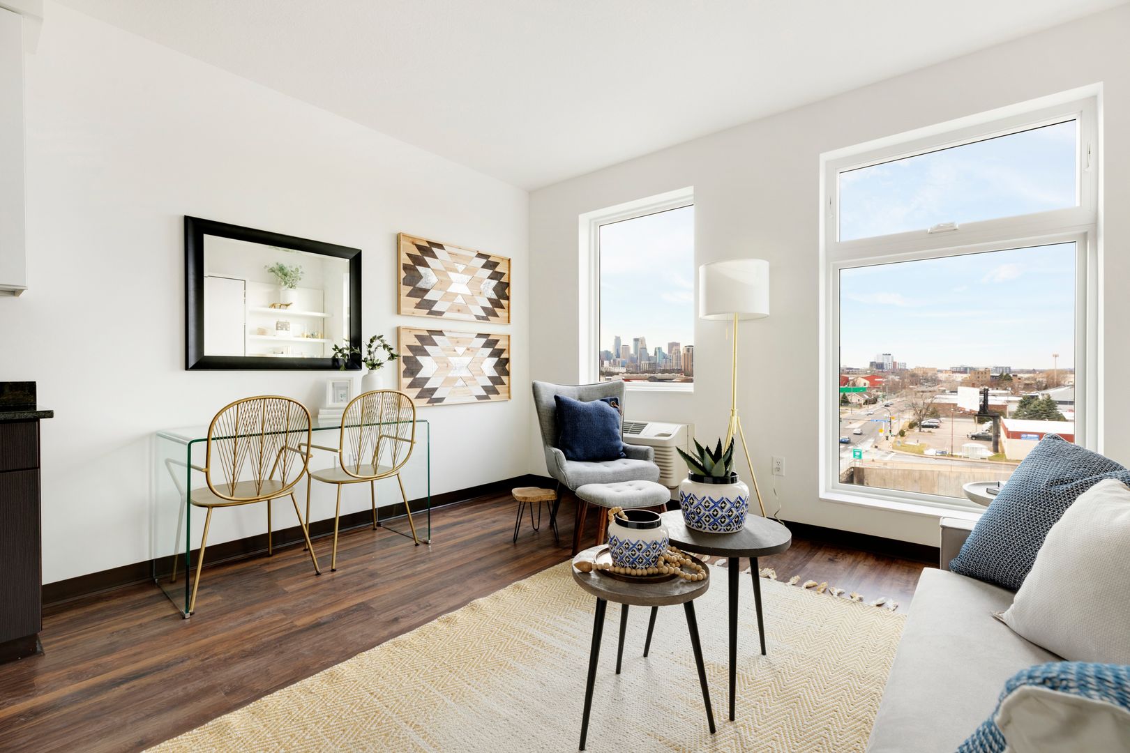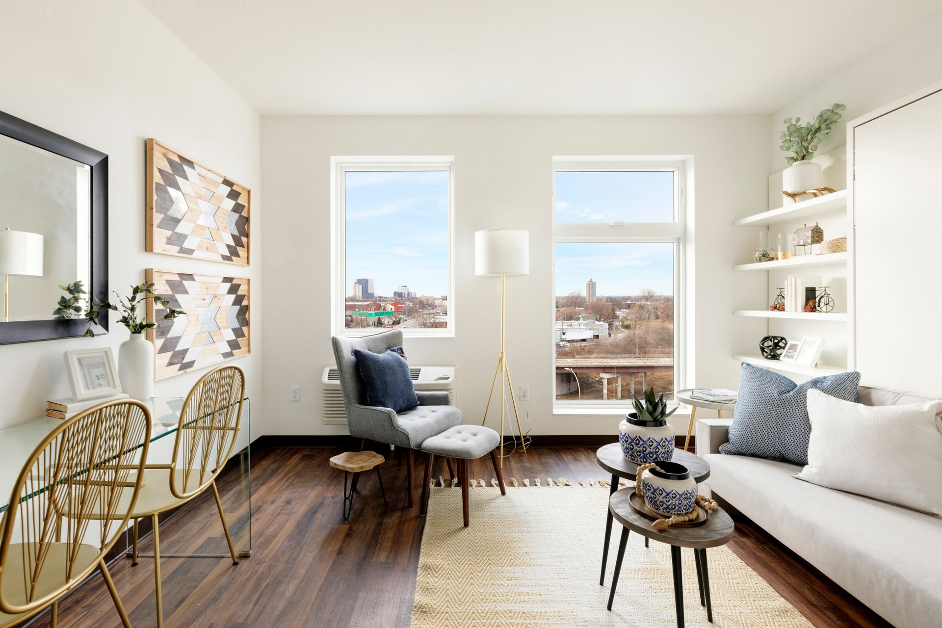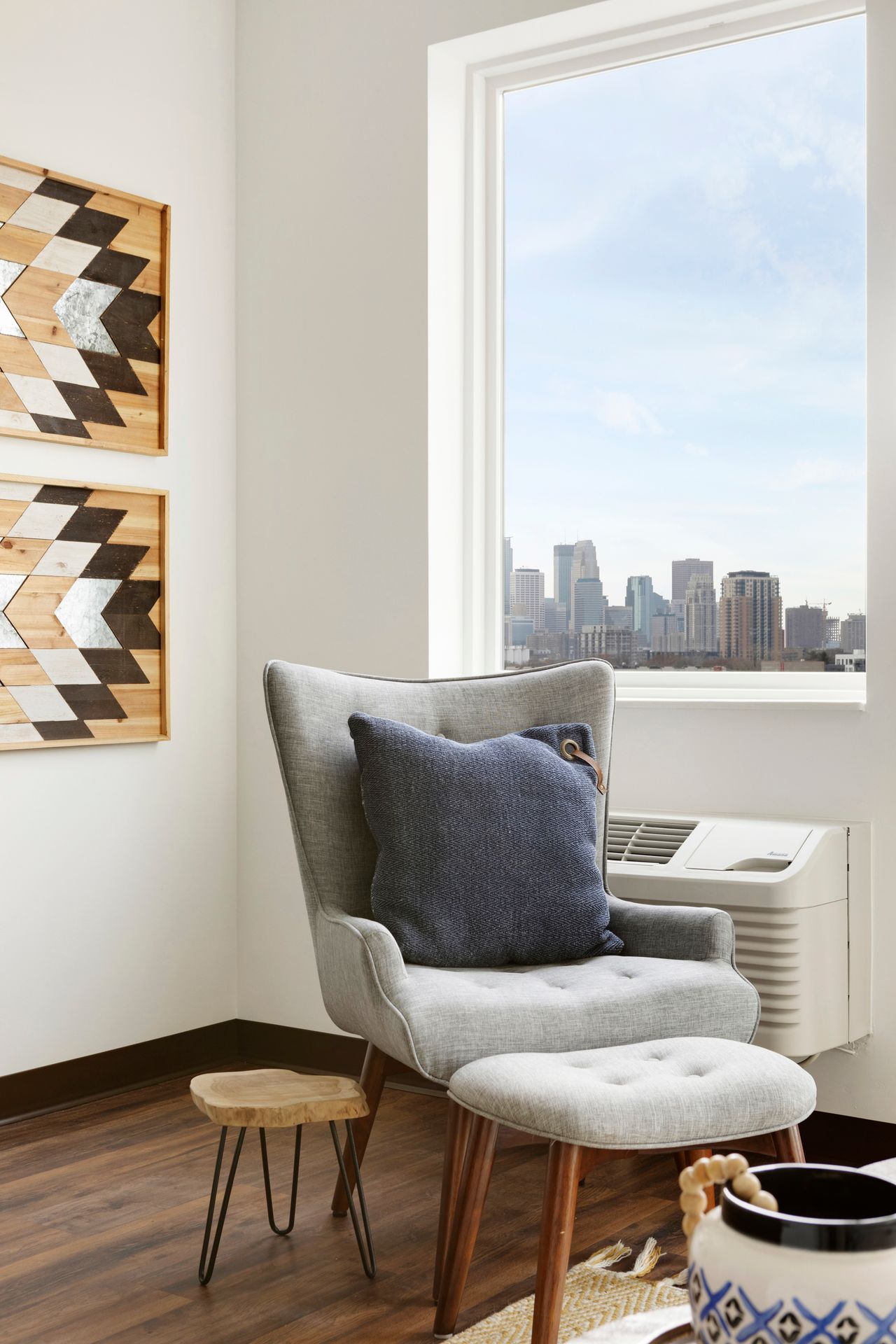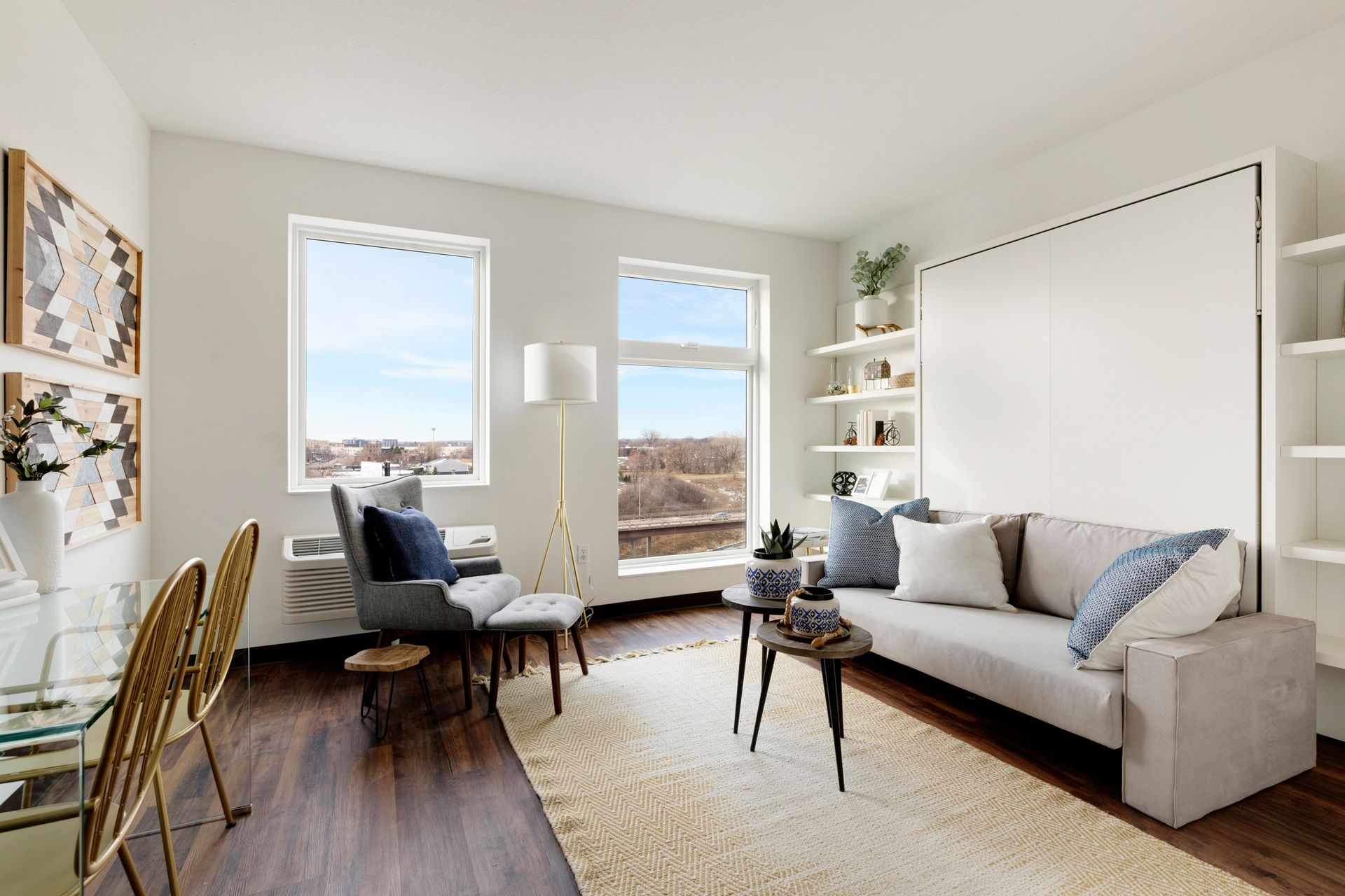 Rym Offers both furnished and unfurnished studio units. Each apartment features 9 – foot ceilings, expansive windows, app-based controls and out-the-door access to your own, custom-made Minneapolis lifestyle.